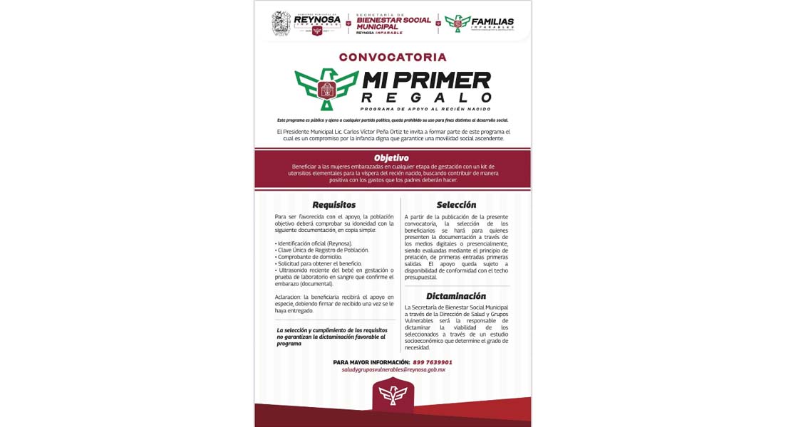 Reynosa, Tam.- El Alcalde Carlos Peña Ortiz invita a las mujeres embarazadas que residan en…