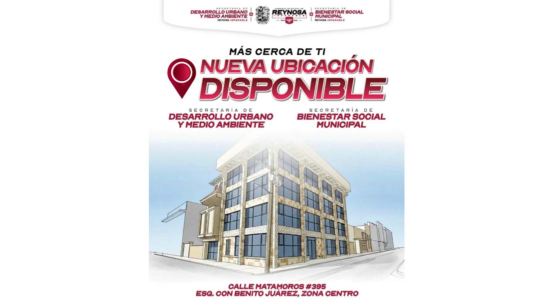 Invita Secretaría de Desarrollo Urbano y Medio Ambiente de Reynosa a nueva ubicación