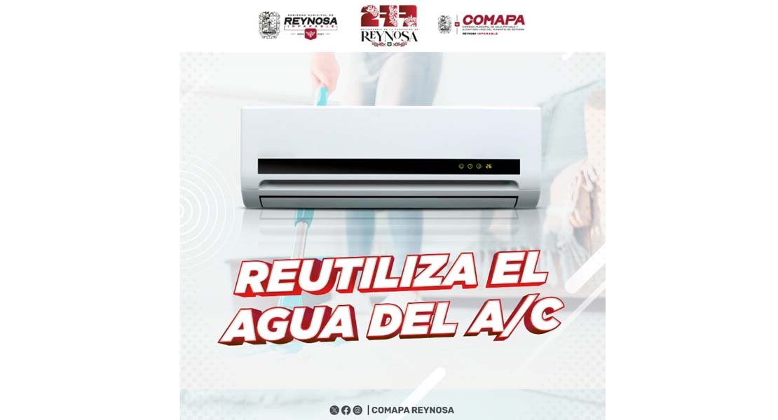 Reynosa, Tam.- La Comisión Municipal de Agua Potable y Alcantarillado de Reynosa invita a la población a reutilizar el agua que generan los equipos de aire acondicionado, la cual puede aprovecharse en actividades como el riego de plantas, limpieza de patios, banquetas o labores domésticas, evitando así el desperdicio de este recurso vital.