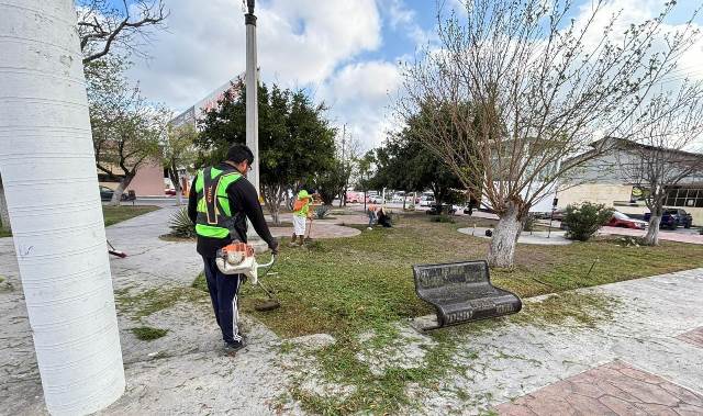 – Limpieza de la plaza Benito Juárez, colonia Bella Vista.