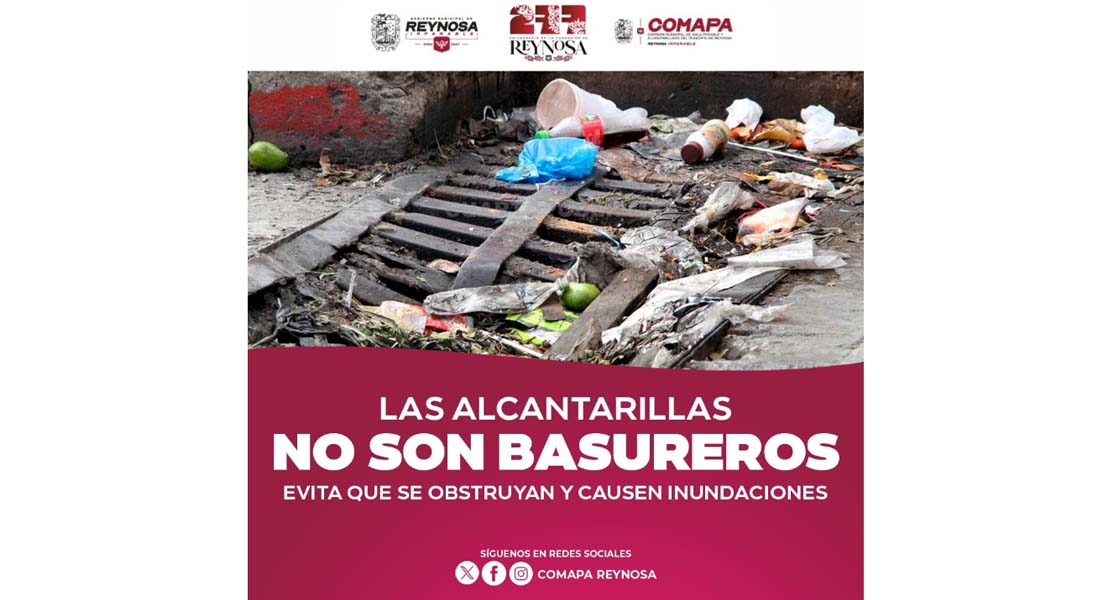 Reynosa, Tam.- La Comisión Municipal de Agua Potable y Alcantarillado de Reynosa hace un llamado a la ciudadanía a evitar arrojar basura, plásticos, grasas y otros desechos en la vía pública y en las alcantarillas.