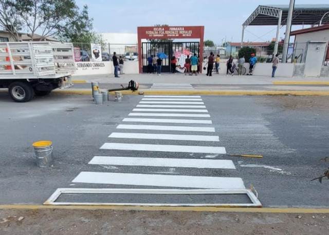 Pinta Gobierno Municipal de Reynosa cruce peatonal escolar