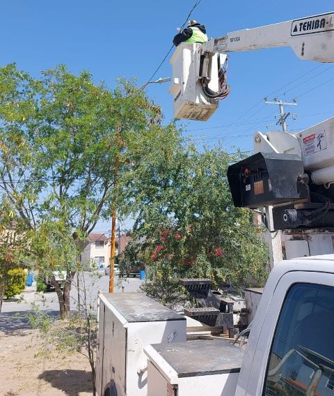 En la colonia Las Palmas fueron recogidos 4 postes y 10 lámparas de alumbrado público; 1 poste en Villas de la Joya y 1 en Villas de Imaq, continuando el recorrido por distintas áreas de la ciudad para solucionar cada situación.