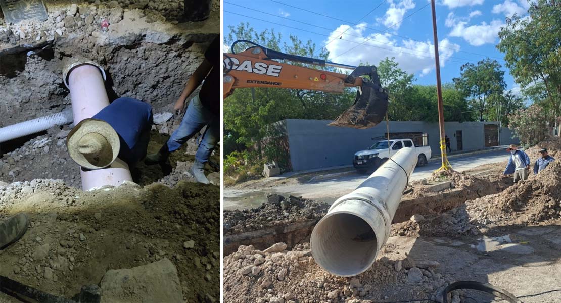 Como parte de estas acciones, se han desarrollado importantes maniobras como la instalación de tubería sanitaria de 24 pulgadas, la construcción de boca en pozo de visita, así como la instalación de tubería de 16 pulgadas para desfogue pluvial, trabajos que permitirán optimizar la conducción y desalojo de aguas residuales y pluviales.
