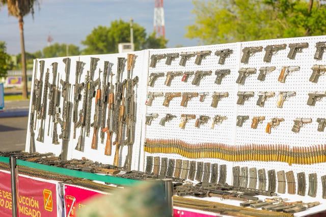 En el evento en que se presentaron 205 armas cortas y 680 largas para su destrucción, también participaron, el representante del Gobernador Constitucional de Tamaulipas, Doctor Américo Villarreal Anaya, Lic. Armando de la Cruz Alcantar, Director General del Instituto Registral y Catastral del Estado y Manuel Eduardo León Torres, Fiscal Federal en el Estado de Tamaulipas, entre otros invitados.