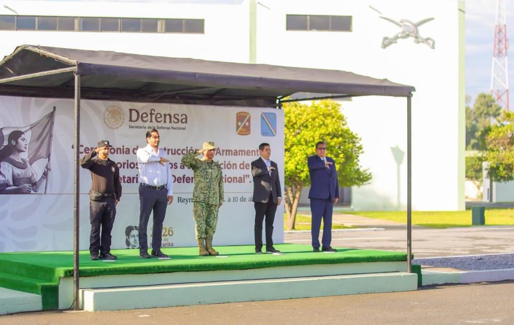 Reynosa, Tam.- El Presidente Municipal Carlos Peña Ortiz participó en la «Ceremonia de Destrucción de Armamento y Accesorios Puestos a Disposición de la Secretaría de la Defensa Nacional, SEDENA», celebrada este viernes 10 de abril en el Campo Militar General Pedro Hinojosa 1A, de Reynosa, ceremonia que presidió el Coronel de Caballería Marco Antonio de la Fuente Barragán, Comandante del Décimo Noveno Regimiento de Caballería Motorizado de la Octava Zona Militar.