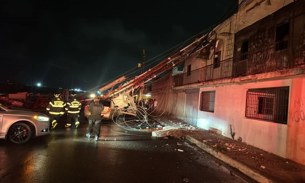 La dependencia atendió situaciones provocadas por el colapso de una antena de comunicación, cables caídos, y postes con cortos circuitos que causaron apagones en distintos sectores de la ciudad.