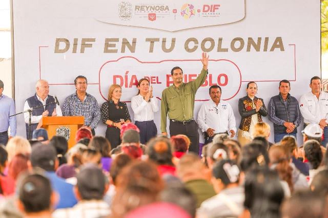 Reynosa, Tam.- El Alcalde Carlos Peña Ortiz encabezó la brigada DIF En Tu Colonia en Balcones de Alcalá con la asistencia de más de 700 habitantes, acercándoles directamente servicios médicos, asistenciales y jurídicos sin costo, para mejorar la calidad de vida de las familias reynosenses.