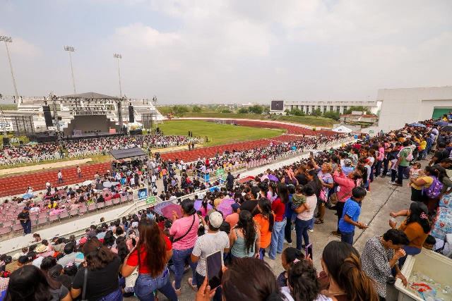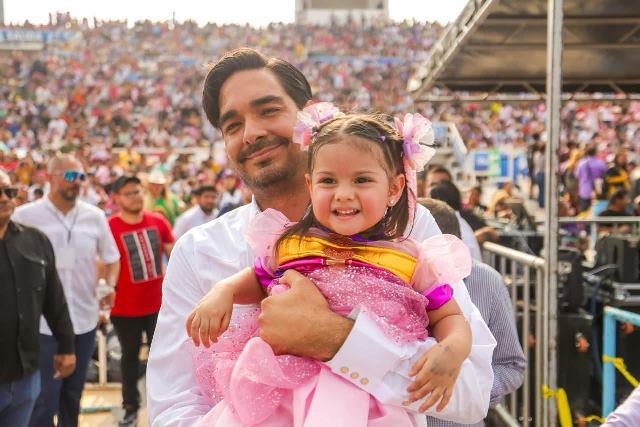 Reynosa, Tam.- El Presidente Carlos Peña Ortiz presentó la tarde de hoy ante más de 15,000 personas el Show de Luli Pampín, ¡Bienvenidos, Juntos Otra Vez! celebrando el Día del Niño 2026 para todos los pequeños de Reynosa en un gran escenario, el Polideportivo, donde chicos y grandes disfrutaron de un magnífico espectáculo infantil al que asistieron como invitadas la Senadora Maki Esther Ortiz Domínguez y la Diputada Federal Casandra Priscila De los Santos Flores.
