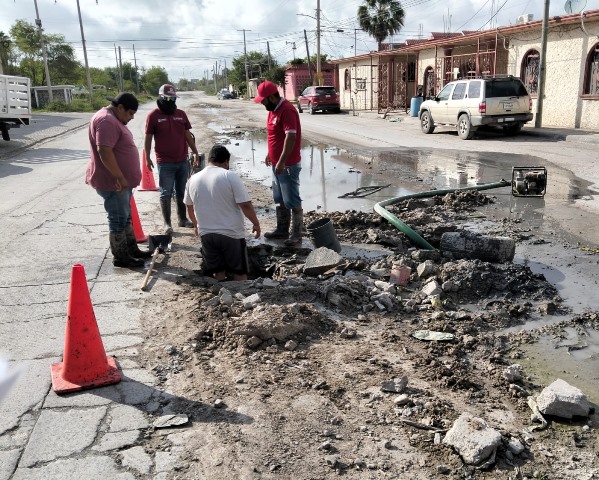 Reynosa, Tam.- Por instrucciones del alcalde, Carlos Peña Ortiz, la Comisión Municipal de Agua Potable y Alcantarillado de Reynosa llevó a cabo trabajos de reparación de fugas de agua potable en diferentes sectores de la ciudad, con el objetivo de evitar el desperdicio del vital líquido y mejorar el servicio para la ciudadanía.