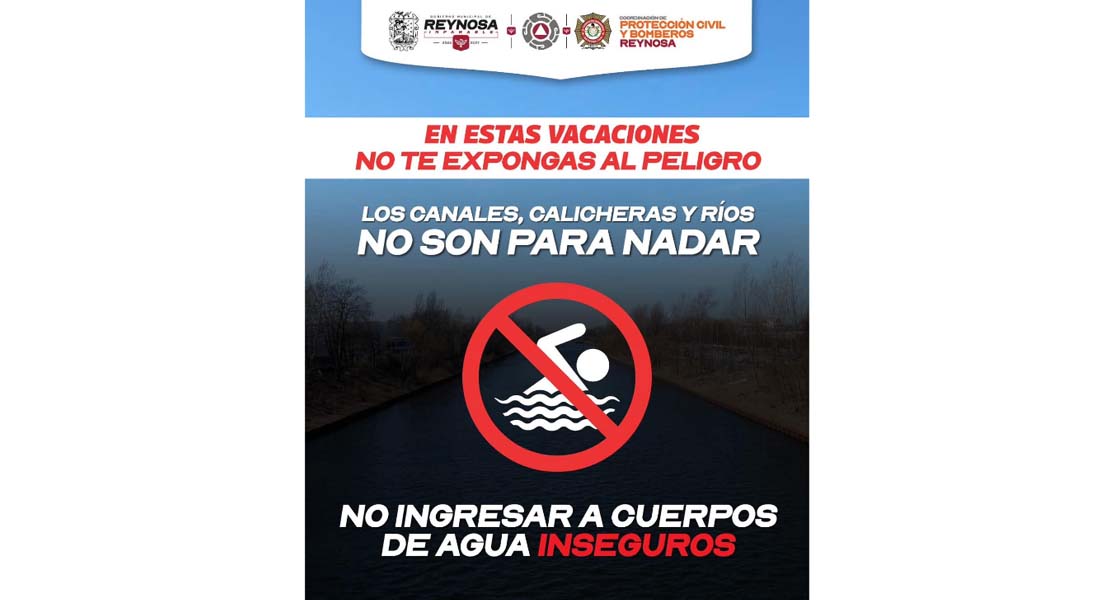 Exhorta Gobierno de Reynosa a evitar introducirse en cuerpos de agua no vigilados