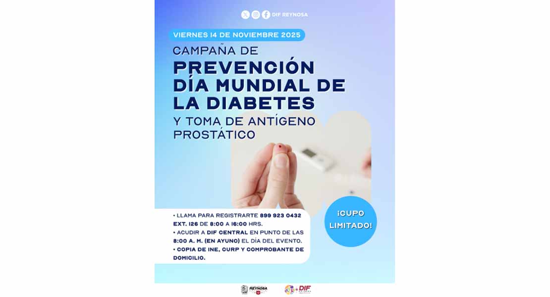 Invita DIF-Reynosa a la Campaña de Prevención “Día Mundial de la Diabetes” y Toma de Antígeno Prostático