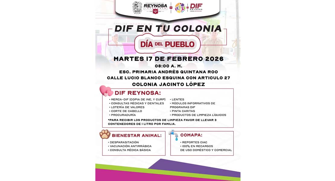 Reynosa, Tam.- El Sistema DIF-Reynosa que preside Carlos Luis Peña Garza, informa a la ciudadanía…