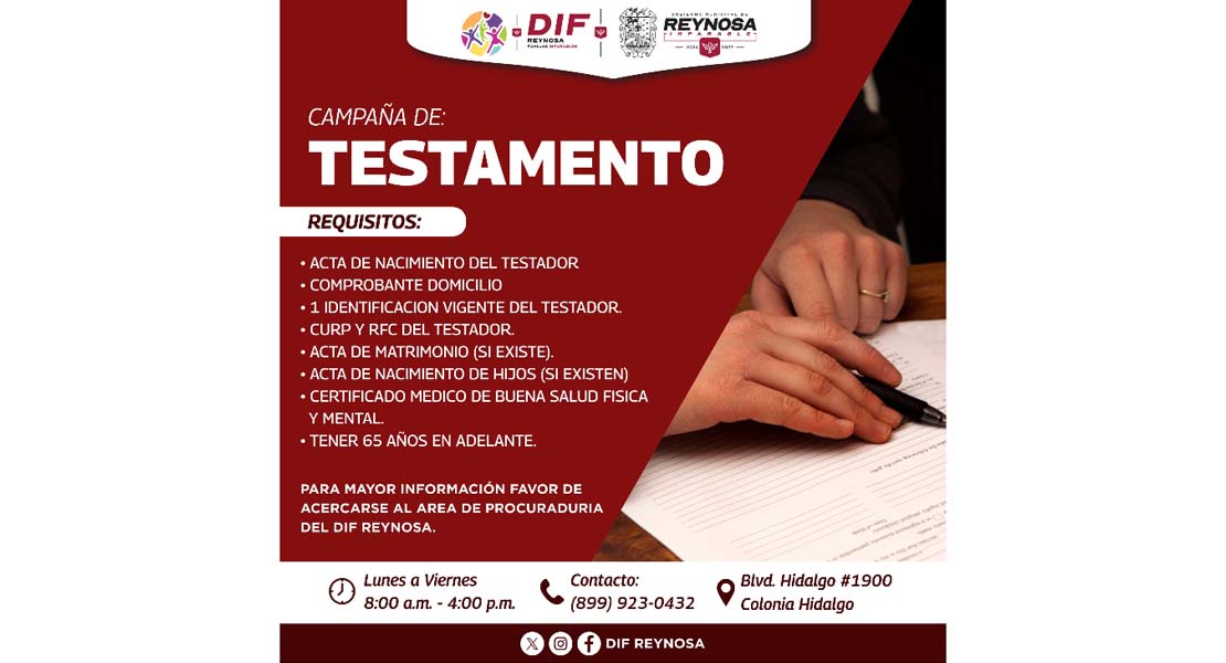 Amplía DIF-Reynosa campaña de testamentos gratuitos para proteger el patrimonio familiar